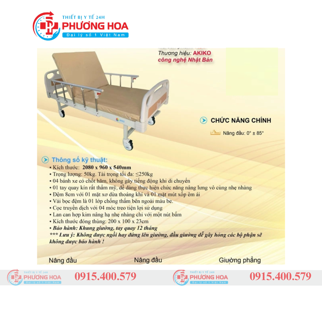 1. Giới thiệu Giường Y Tế 1 Tay Quay AKIKO A81