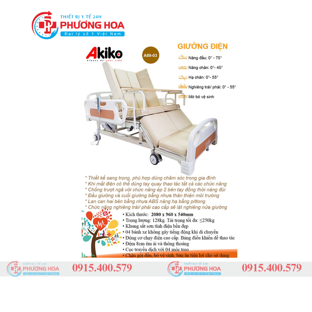 8. Địa chỉ mua Giường y tế 2 tay quay Akiko A83-03 chính hãng