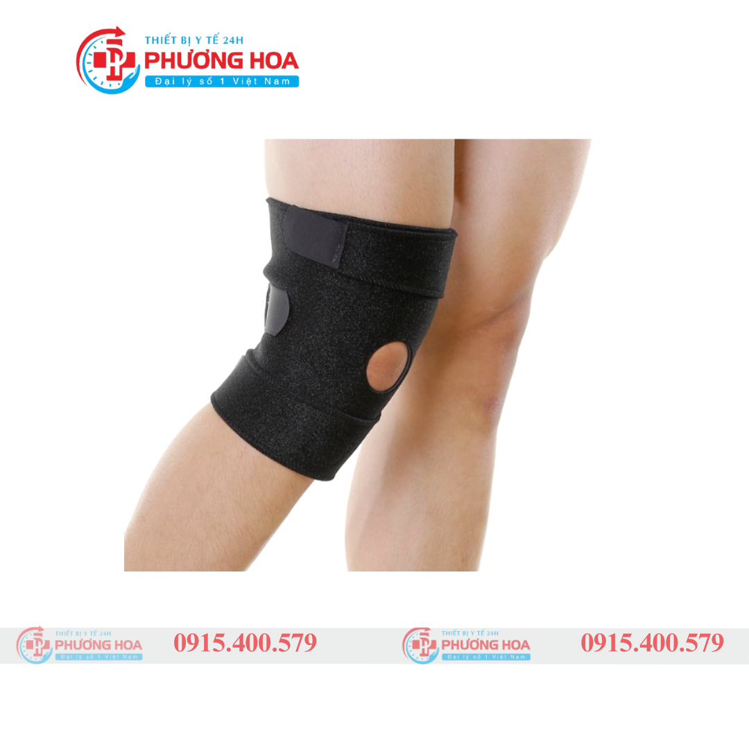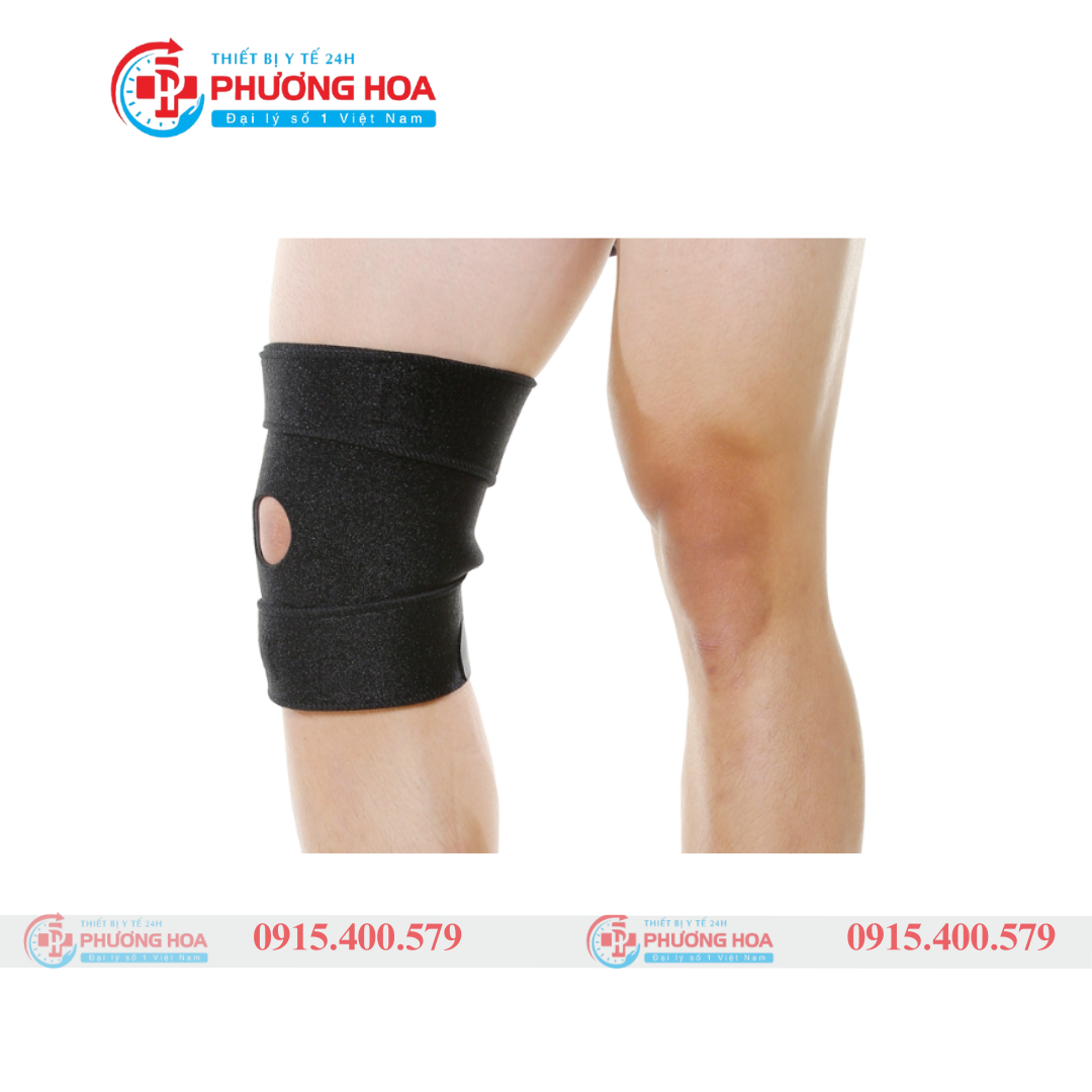 Đeo nẹp ôm vừa khít quanh khớp gối, điều chỉnh dây dán Velcro sao cho thoải mái và cố định tốt.