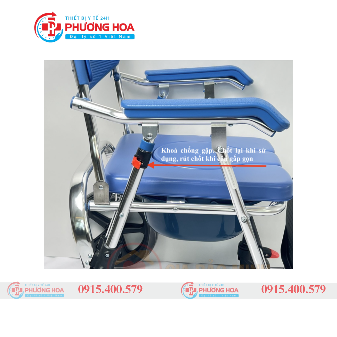 - Bánh trước có khóa chống trượt, đảm bảo an toàn khi ngồi hoặc di chuyển