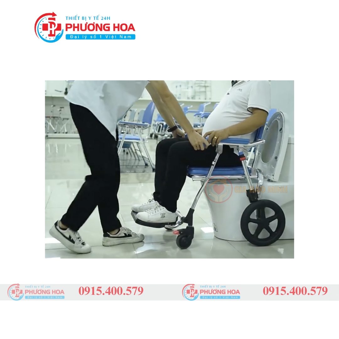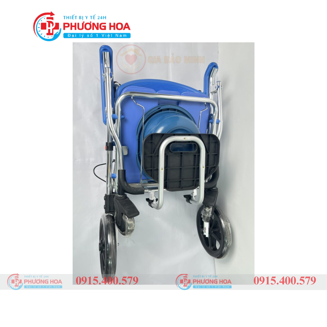 Xe có sẵn bô đi kèm, có thể sử dụng như ghế bô tại chỗ hoặc đẩy trực tiếp vào bồn cầu nhờ phần gầm thiết kế thông minh