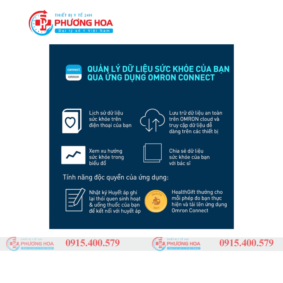 Kết nối Bluetooth với ứng dụng OMRON Connect để theo dõi và lưu trữ dữ liệu dễ dàng