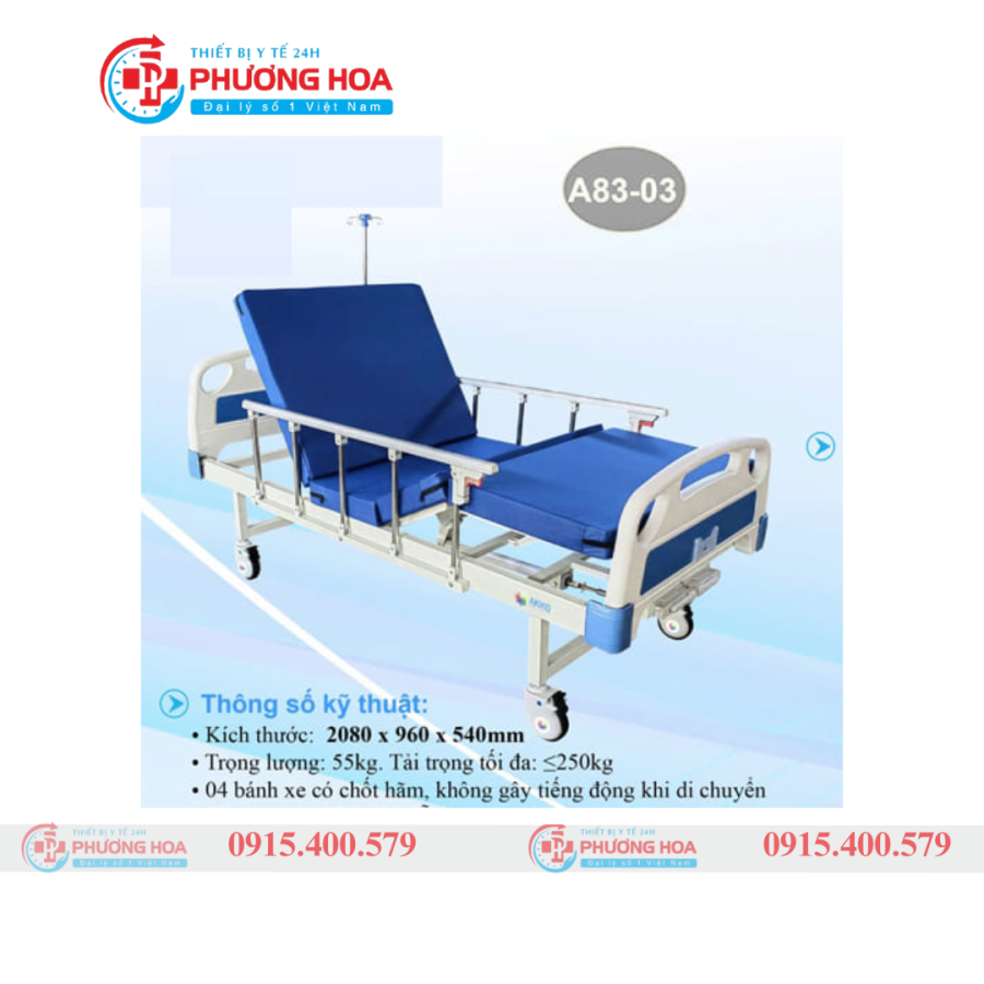 8. Địa chỉ mua Giường y tế 2 tay quay Akiko A83-03 chính hãng