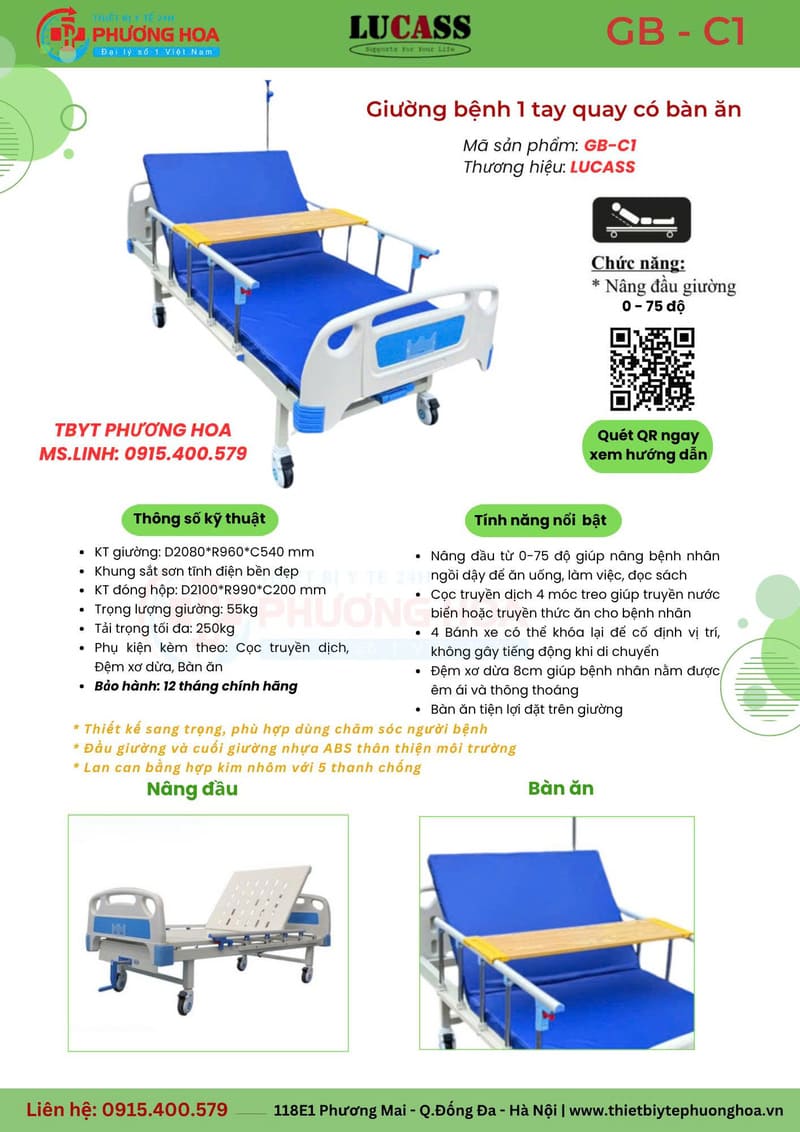 Ở phân khúc giường y tế chăm sóc tại nhà, giường 1 tay quay vẫn là một lựa chọn đáng cân nhắc nhờ sự đơn giản, dễ dùng, chi phí hợp lý và đáp ứng tốt các nhu cầu cơ bản. Với gia đình đang cần một giải pháp hỗ trợ người bệnh ngồi dậy thuận tiện hơn mà không cần quá nhiều tính năng phức tạp, đây là dòng sản phẩm khá thực tế và kinh tế. Để biết thêm chi tiết vui lòng liên hệ trực tiếp đến Hotline: 0915.400.579 để được tư vấn miễn phí nhé!