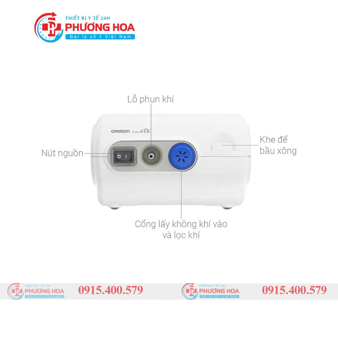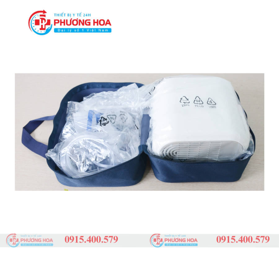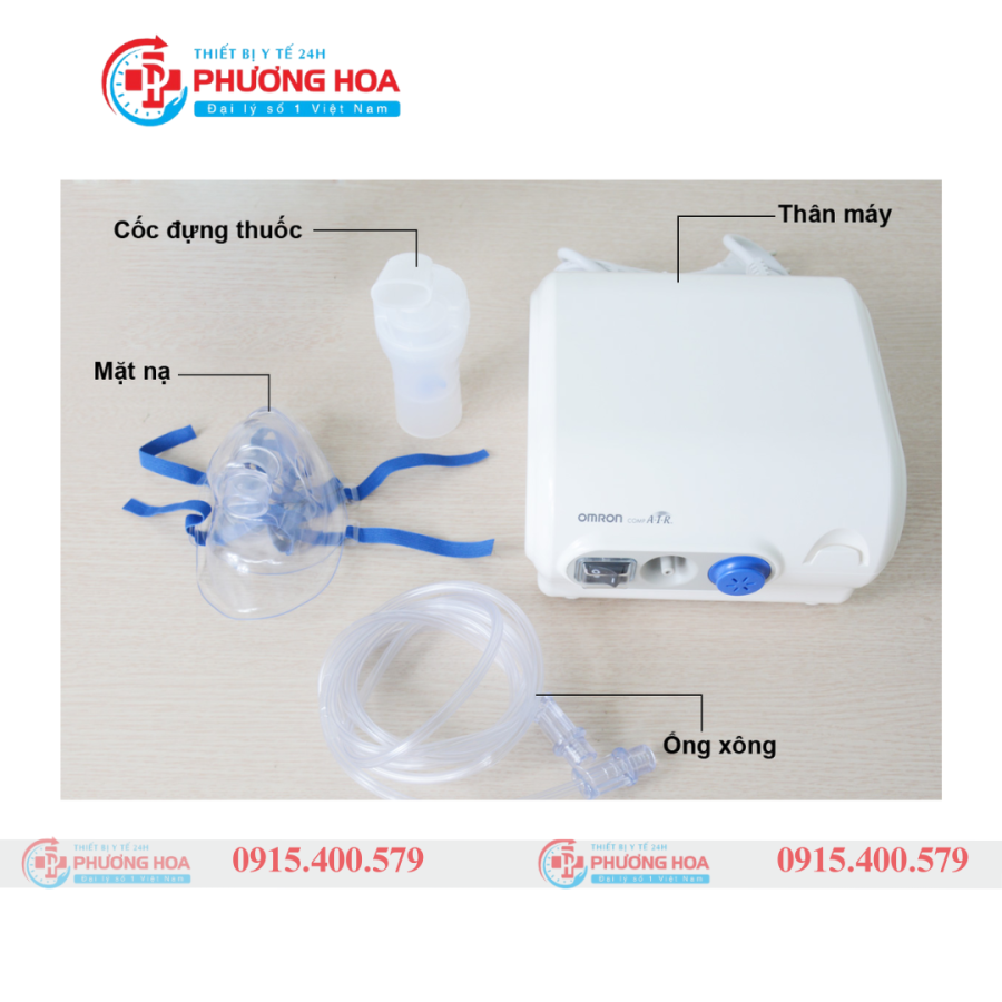 | Phụ kiện đi kèm | Mặt nạ người lớn, mặt nạ trẻ em, ống dẫn khí, cốc thuốc, đầu xông miệng, túi đựng |
