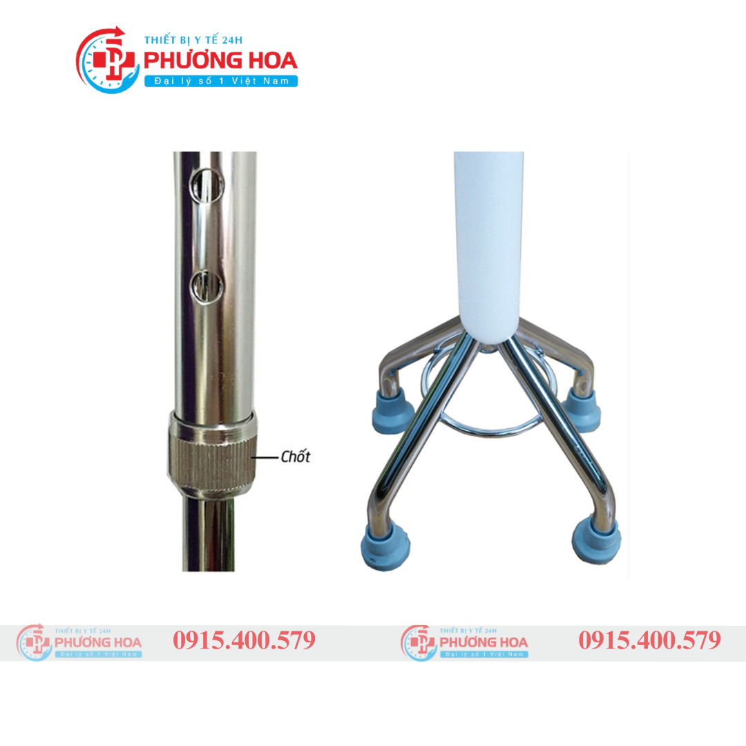 Khung gậy làm từ thép mạ crom sáng bóng, không rỉ, có độ bền cao và chịu lực tốt.