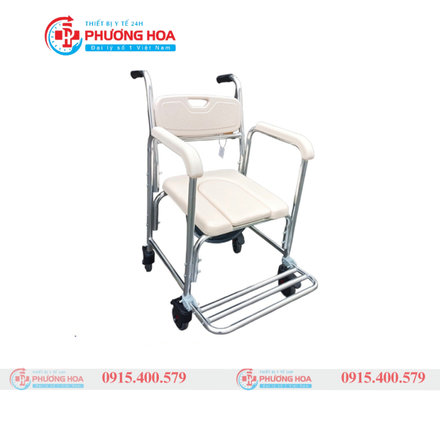 Tích hợp 4 bánh xe linh hoạt: Biến chiếc ghế bô thành một xe lăn di động cơ bản, dễ dàng di chuyển bệnh nhân vào nhà vệ sinh hoặc phòng tắm mà không cần nhấc bổng.