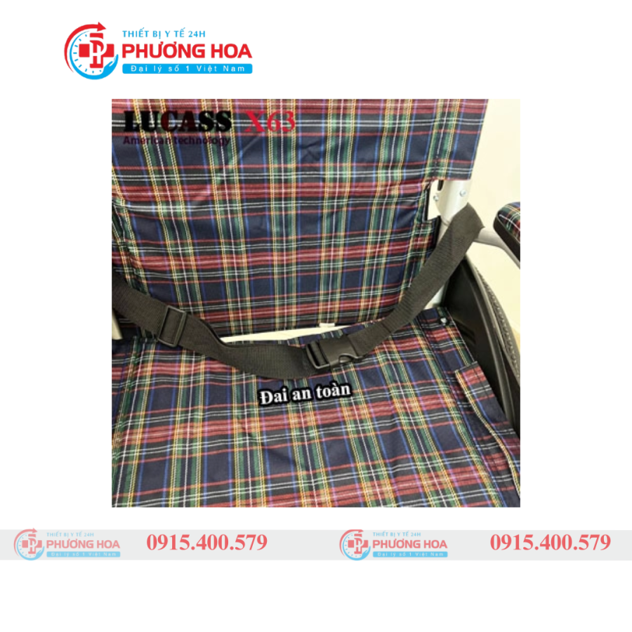Xe lăn vải kẻ có phanh Lucass X75 mẫu mới nhất