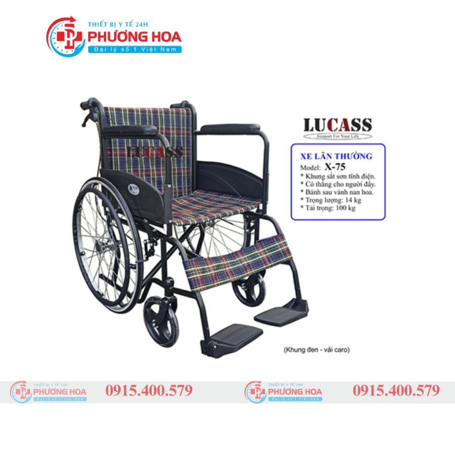 Xe lăn Lucass X61 phiên bản có bánh lăn tay